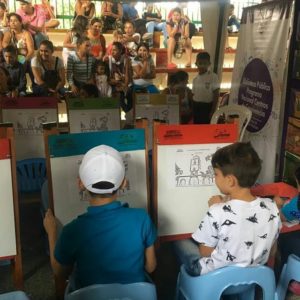 En la Ruta del Desarrollo y la Paz N. 17, La Corporación Biblioteca Rafael Carrillo Lúquez lleva su oferta Institucional al municipio de Aguachica, Cesar los niños en el Stand disfrutan de diferentes actividades lúdicas, dibujos, juegos de mesas.
