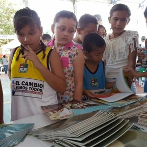 La Primera Gestora Social del Departamento Edna Maria Vigna hace entrega a los niños del municipio de San Alberto más de 300 cuentos infantiles de la colección leer es mi cuento a través de la Corporación Biblioteca Rafael Carrillo Lúquez.