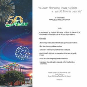 Te invitamos a celebrar las Bodas de Oro del Departamento del Cesar.