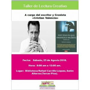 La corporación Biblioteca Rafael Carrillo Lúquez invita al Taller de escritura Creativo a cargo del escritor y cronista » Cristian Valencia.